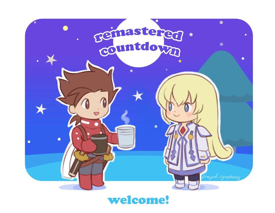 What is this countdown?The countdown is a fan event that will count down the days until the port release of the JRPG, Tales of Symphonia Remastered! It will include contributors who sign up for the event. On each day, either one or multiple contributors will have their work showcased on the event account with proper credit.When is Tales of Symphonia Remastered being released?It will be released on February 17, 2023!Who can participate?We are accepting artists, writers, cosplayers, and any other creatives! All skill levels are welcome.As of November 30, 2022, we have closed our signups for the countdown.How long will the countdown last and when will it start?As of right now, we are planning to start the countdown at January 17, 2023 for a total of 31 days! With our current number of participants, multiple creators will share the same days. For the release date, we will also be featuring a group collab pic from several artists in the countdown as a final celebration!What are the requirements for the works to be submitted?Essentially, all work made for the countdown must be new and of your own creation, must not primarily feature characters from the sequel Dawn of the New World/Knight of Ratatosk, and be SFW with a max rating of PG-13.For more details on the guidelines, please click here!Are ships/AUs allowed?Absolutely!Can characters from the sequel Dawn of the New World/Knight of Ratatosk also be featured?As the port only contains Tales of Symphonia, we would prefer for all contributors' works to focus on the characters from the first game.Where is this countdown hosted?We are hosting the countdown both on twitter and tumblr. Please be sure to follow us on these accounts!Who is running the countdown?Darkhymns (fanfic writer) and Frayed-Symphony (fanartist) are running this event. Weโve been longtime fans of Symphonia since 2004, and weโre excited to celebrate the port release of our favorite game with other fans!